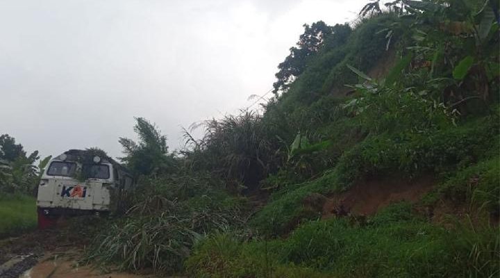 PT KAI Daerah Operasi 2 Bandung mengalihkan sejumlah perjalanan kereta ke moda transportasi bus. Petugas masih membersihkan material longsor.